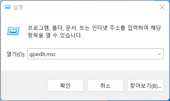 1. ์๋์ฐ ์คํ์์ gpedit.msc ์ ๋ ฅ