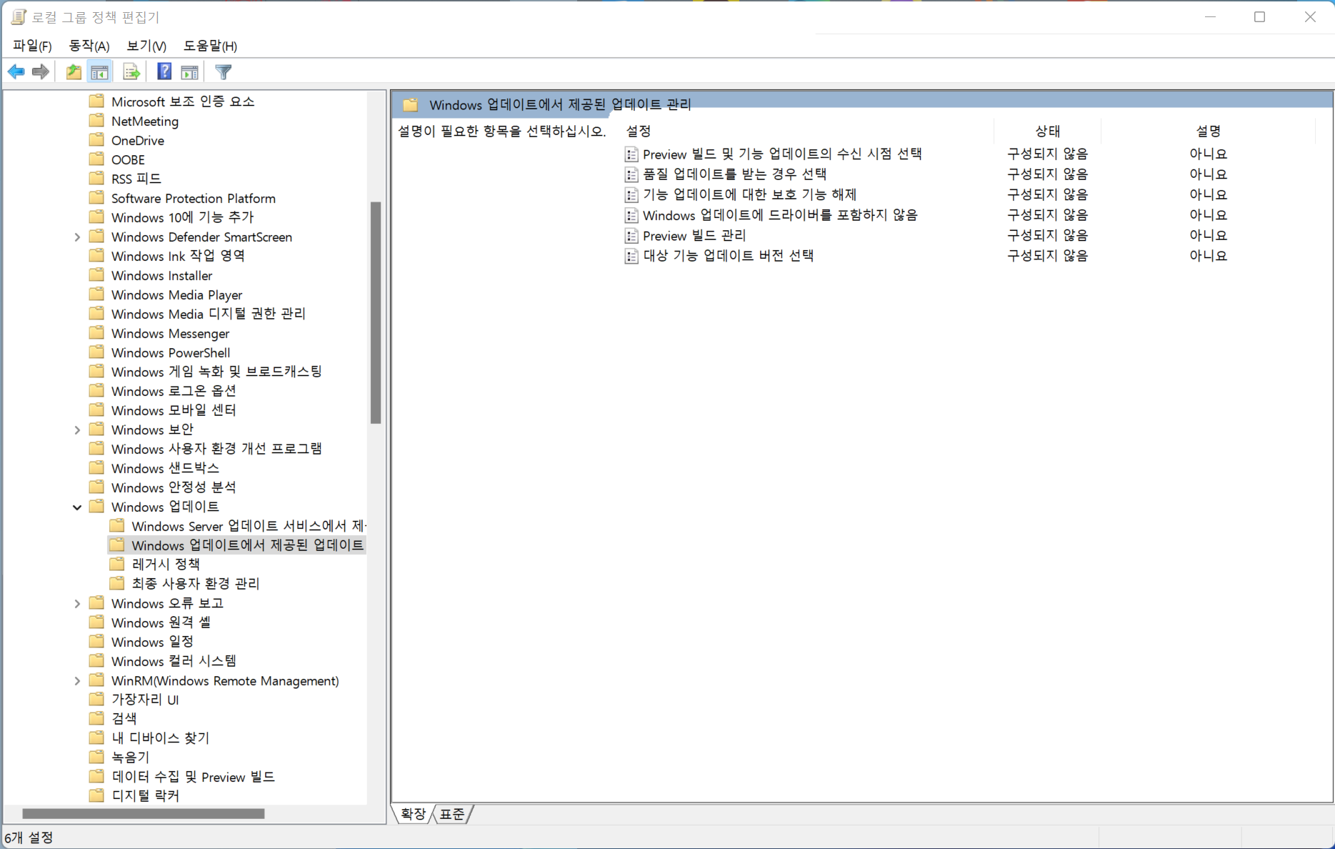 2. "๋ก์ปฌ ์ปดํจํฐ ์ ์ฑ - ์ปดํจํฐ ๊ตฌ์ฑ - ๊ด๋ฆฌ ํ ํ๋ฆฟ - Windows ๊ตฌ์ฑ์์ - Windows ์ ๋ฐ์ดํธ - Windows ์ ๋ฐ์ดํธ์์ ์ ๊ณต๋ ์ ๋ฐ์ดํธ ๊ด๋ฆฌ - ๋์ ๊ธฐ๋ฅ ์ ๋ฐ์ดํธ ๋ฒ์ ์ ํ" ๋ฉ๋ด ์ฐพ์ ๋ค์ด๊ฐ๊ธฐ